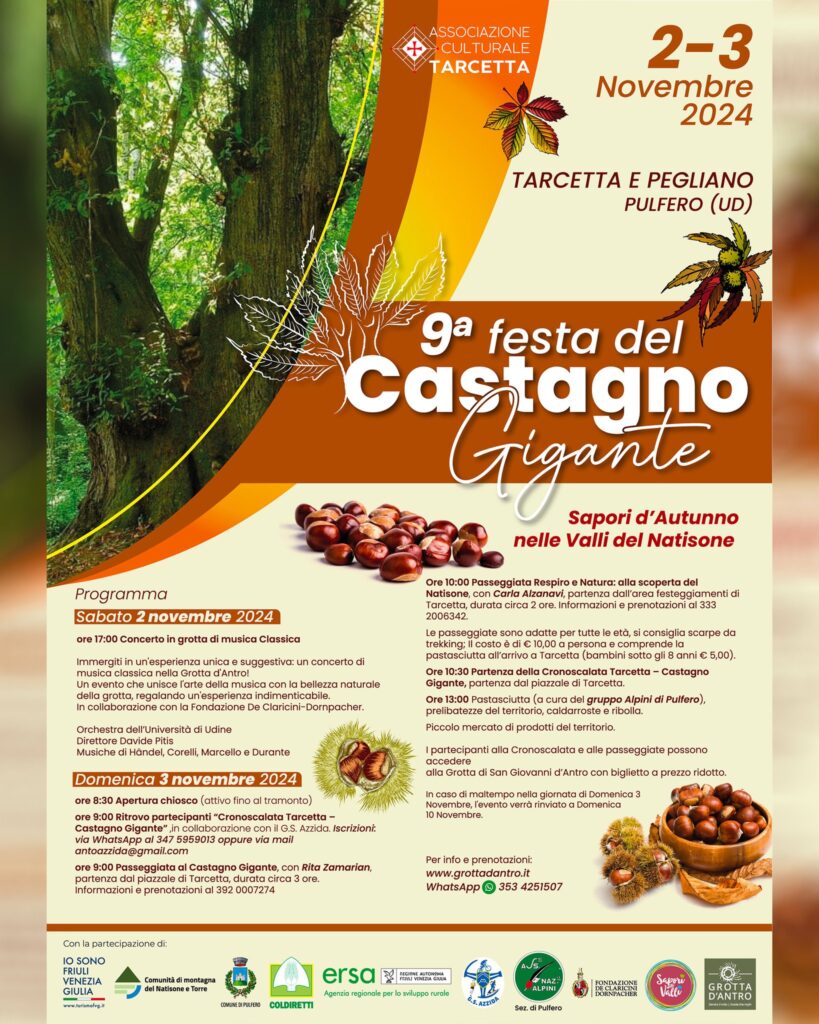 Il 2 e 3 novembre 2024, Tarcetta e Pegliano, nel comune di Pulfero (UD), ospiteranno la 9ª Festa del Castagno Gigante, un evento che celebra i sapori d’autunno nelle Valli del Natisone. Organizzato da...