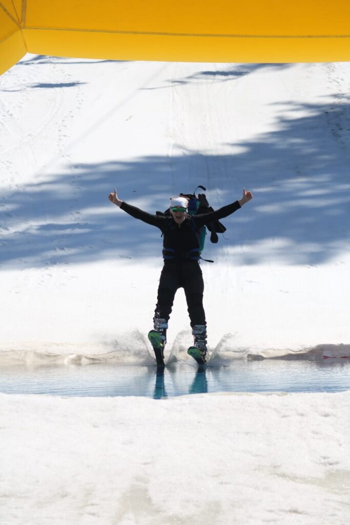 Lungo il tracciato, numerosi giochi hanno reso la gara ancora più divertente: una prova di biathlon, una sfida di velocità con i moschettoni da arrampicata, una gimkana con gli sci e, a concludere, una spettacolare pozza d’acqua di oltre sei metri da attraversare.