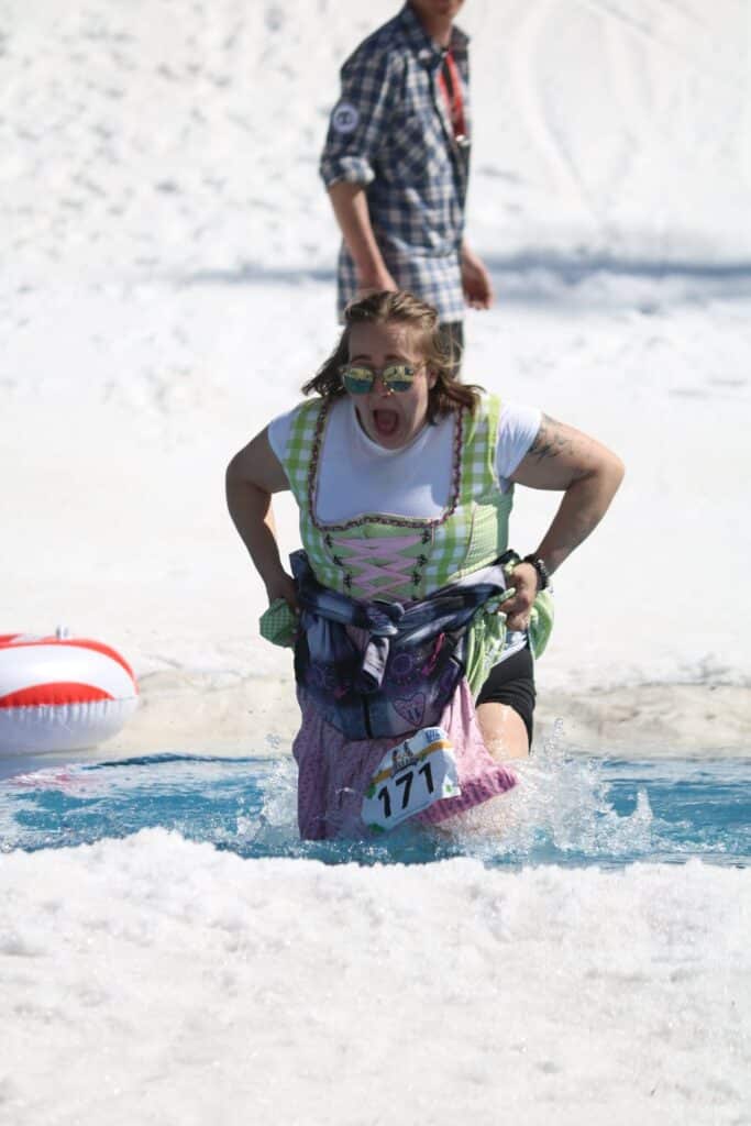 A rendere l’evento ancora più pittoresco ci hanno pensato i coloratissimi abiti dei concorrenti e le trovate fantasiose, come la discesa a bordo di un pedalò modificato per scivolare sulla neve, accolta dagli applausi divertiti di pubblico e partecipanti.