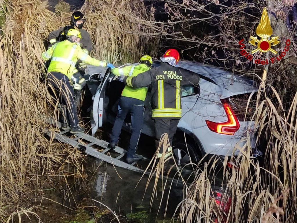 Finisce con l'auto nel fossato pieno d'acqua: un ferito