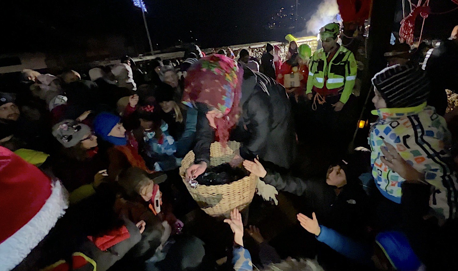 Intorno alle 19:15, la scena si farà ancor più affascinante, poiché la discesa avverrà al buio, con la sola luce del lampioncino che la Befana porta con sé. A metà del tragitto, la discesa sarà interrotta da uno spettacolo pirotecnico che incanterà il pubblico, creando un’atmosfera magica. La discesa culminerà con l’atterraggio sul sagrato della Chiesa di Santa Maria Assunta, dove la Befana distribuirà i regali ai bambini presenti, accompagnata da applausi e risate.