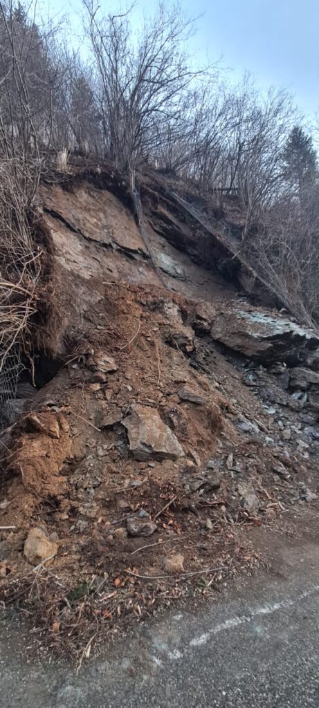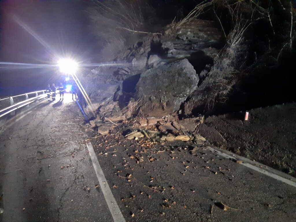 Si tratta di una frana staccatasi ai piedi dell'abitato che ha invaso larga parte della carreggiata.