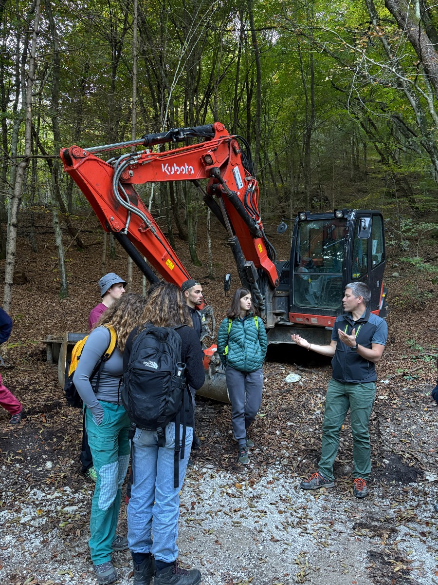 Il secondo giorno, nella foresta di Fusine, focus su pianificazione forestale, tecniche di esbosco e vegetazione locale con Giuseppe Vanone (Presidente dell’Ordine dei Dottori Agronomi e Forestali del FVG), la dott.ssa Elisa De Bortoli e l’imprenditore Gregorio Vuerich.