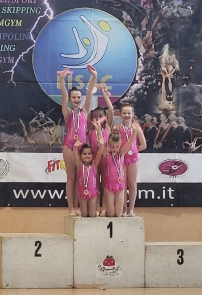 La squadra delle piccole Start Up, composta da Martina Letizia Beltrame, Alessia Francioso, Nicole Gavrylenko, Mia Mingotti, Sveva Pecile, ha incantato il pubblico ed i giudici raggiungendo il punteggio di 13.25. La squadra delle Allieve 10-12, composta dalle atlete Sara Vittoria Beltrame, Federica Falcone, Fiammetta Collovati, Giorgia Francioso, Sofia Coianiz, Alassandra Fotia, Chloe Pecile e Valentina Mattiussi, ha presentato con grande espressività l'esercizio in tema Rock N'Roll sulla canzone Jailhouse Rock di Elvis Presley, ottenendo ben un 16.55, punteggio che non solo ha permesso alla squadra di raggiungere il primo posto, ma è stato il punteggio più alto ottenuto in tutte le categorie.