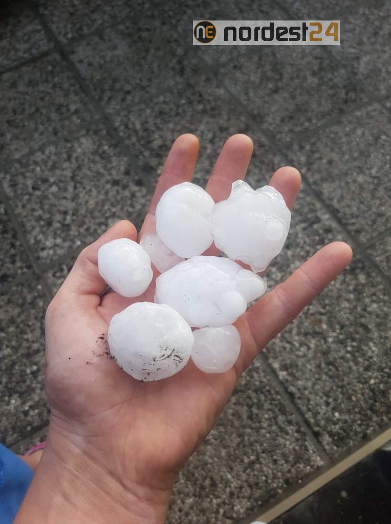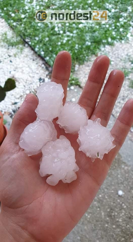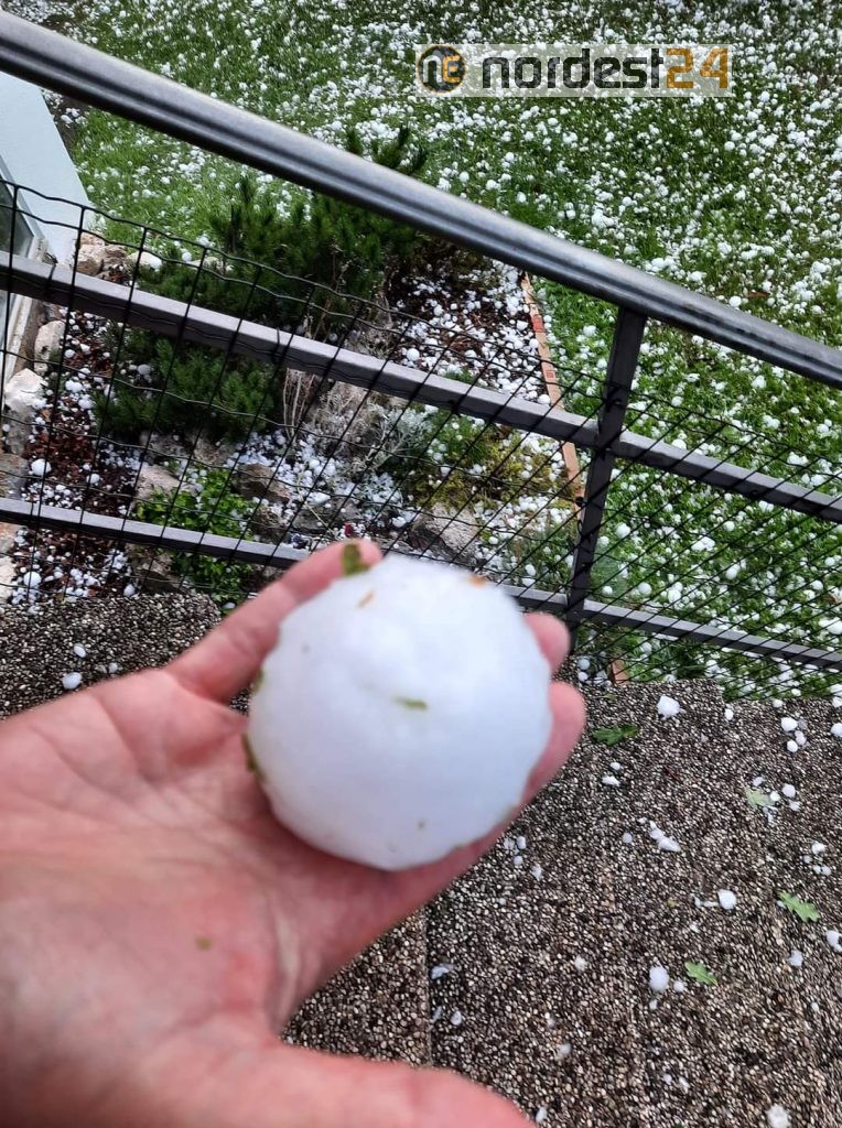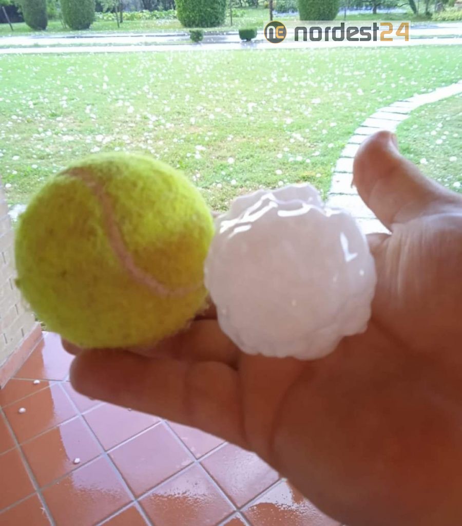 Pessimo risveglio in provincia di Pordenone questa mattina 1 agosto 2021 tra le ore 6:30 e le 7 quando durante il passaggio di un violento fronte temporalesco è scesa la grandine con chicchi grandi come palline da tennis.