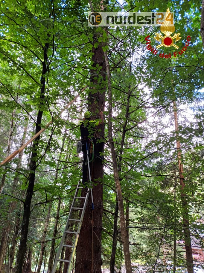 Dopo aver ricevuto una richiesta per un gatto bloccato da sei giorni in cima ad un albero a Lateis di Sauris (UD) la sala operativa del comando dei Vigili del fuoco friulani ha inviato una squadra che giunta sul posto ha però constatato l'impossibilità di eseguire l'intervento visto che il felino si trovava in cima ad un abete alto circa 40 metri e la pianta non era raggiungibile con l'autoscala.