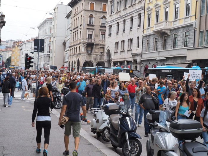 TRIESTE. Alle ore 11 migliaia di persone (8 mila secondo la questura) stanno manifestando a Trieste contro l'obbligo del Green pass attraversando il centro dove forte è la presenza delle forze dell'ordine, scandendo slogan al megafono ed esponendo striscioni.