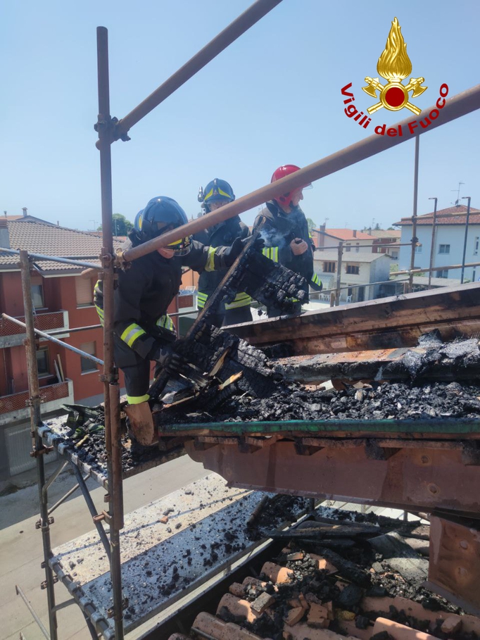 Alle ore 12.30 circa di oggi, 19 maggio 2022, la squadra dei Vigili del fuoco del distaccamento di Spilimbergo (UD) supportata dall'autoscala e l'autobotte giunte dalla sede centrale del capoluogo friulano è intervenuta in Via Rodeano a Carpacco di Dignano (UD) per l'incendio di un tetto in rifacimento.