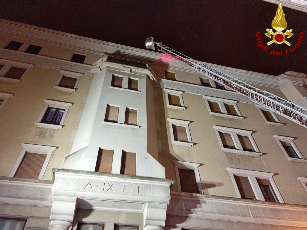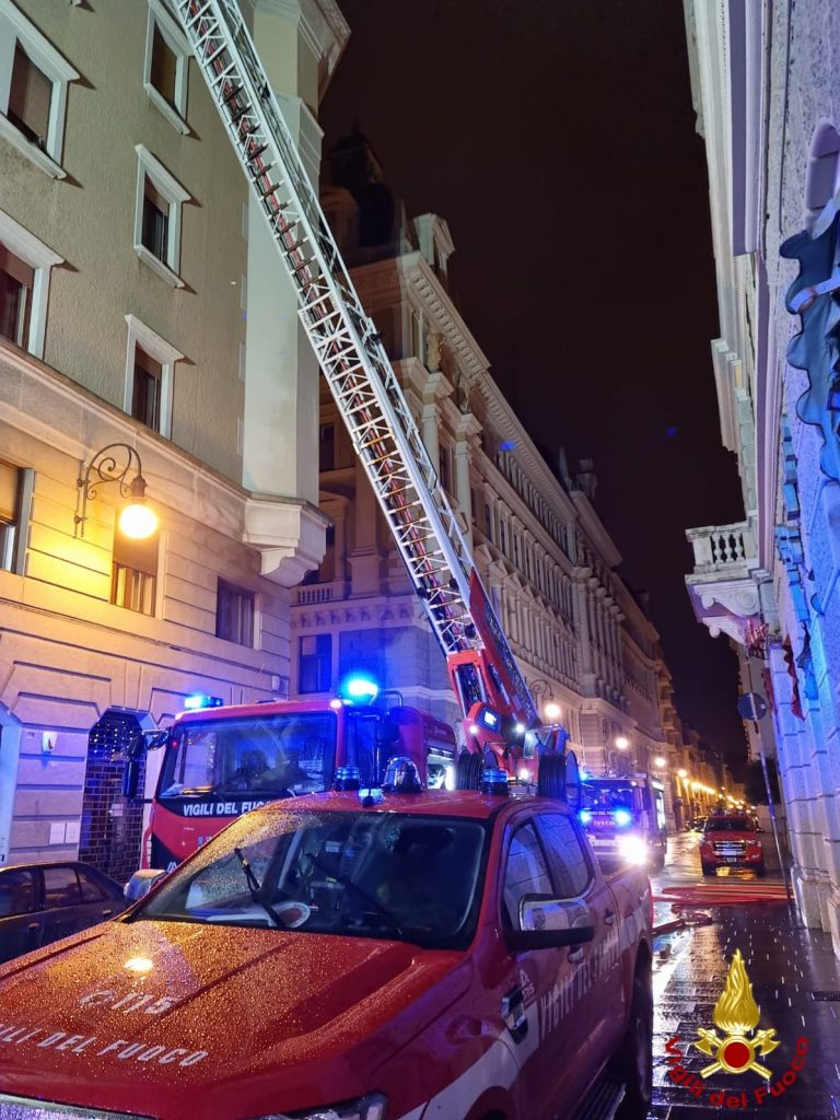 TRIESTE. Un Incendio ha interessato il tetto e la soffitta di uno stabile di 6 piani fuori terra in Via Trento 15 a Trieste, sul posto i Vigili del fuoco del Comando provinciale di Trieste, intervenuti verso le ore 00:20 del 6 gennaio con la prima e seconda partenza, l'autoscala, sul posto anche il personale sanitario del 118.