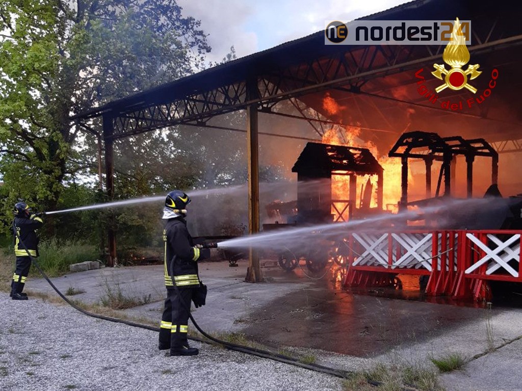 Incendio all'Ex Caserma di Cividale: bruciano i carri della rievocazione storica