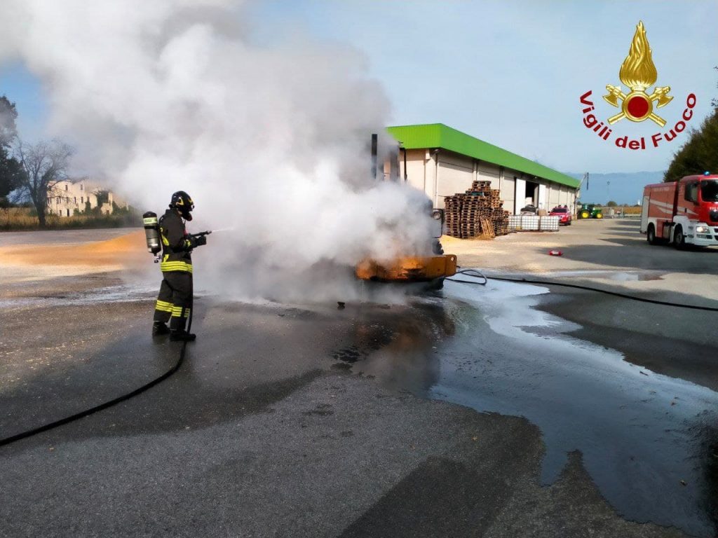 L'incendio si sviluppava quindi all'intero mezzo rendendo necessario l'intervento dei Vigili del Fuoco che spegnevano le fiamme con acqua e schiuma.