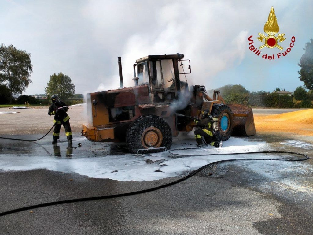 Incendio di una pala gommata a Prata di Pordenone