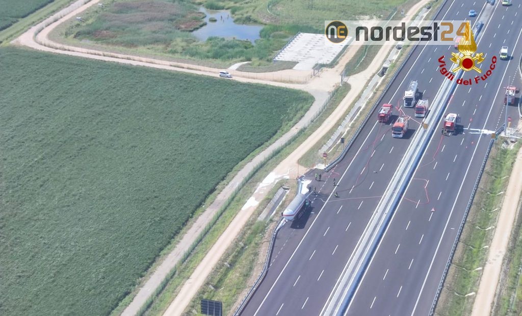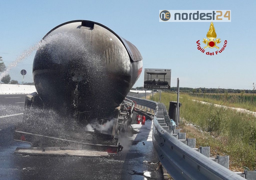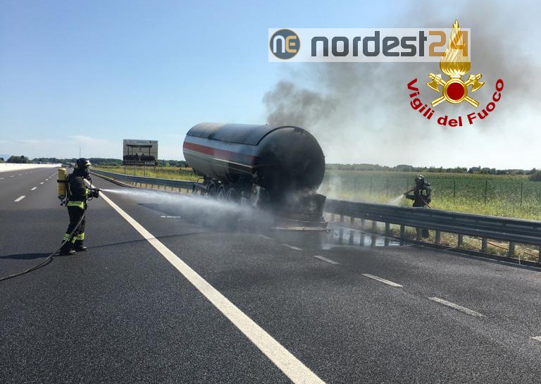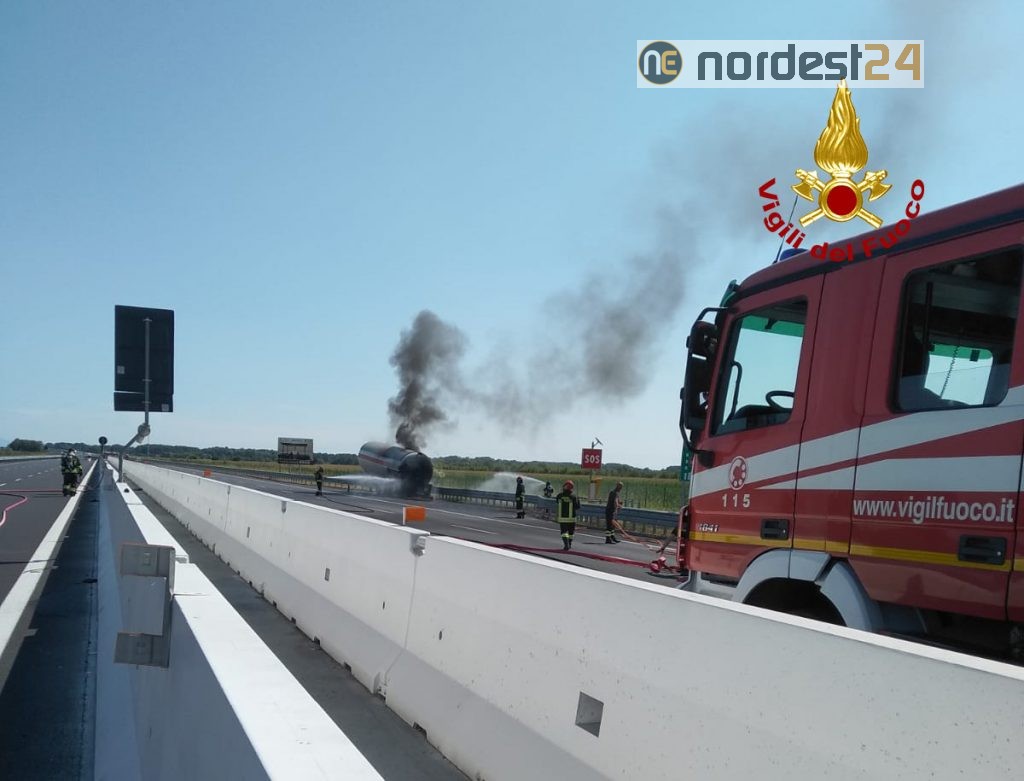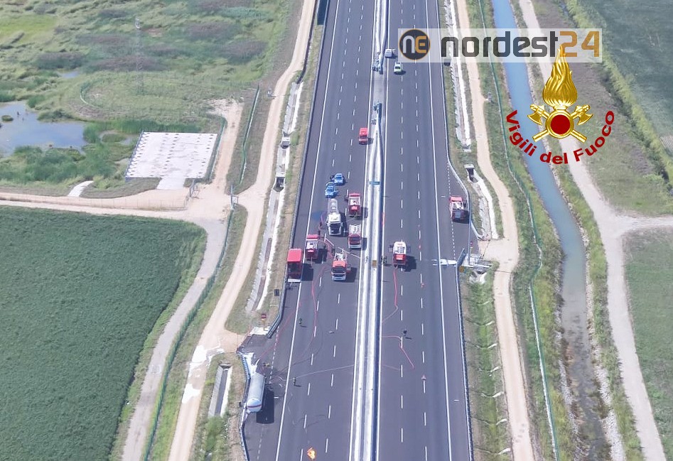 Autostrada chiusa in entrambi i sensi di marcia. I pompieri arrivati sul posto, con molta difficoltà per il traffico congestionato, da Latisana, Portogruaro, San Donà, Udine, Pordenone, Mestre con 3 autopompe, 5 autobotti, il carro NBCR (Nucleare Biologico, Chimico, radiologico) e 25 operatori, sono riusciti a spegnere l’incendio, che aveva coinvolto il gruppo valvolare riuscendo a intercettare la perdita.