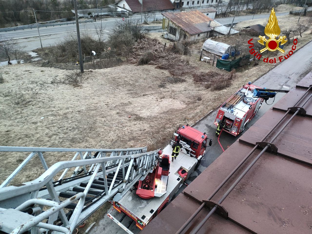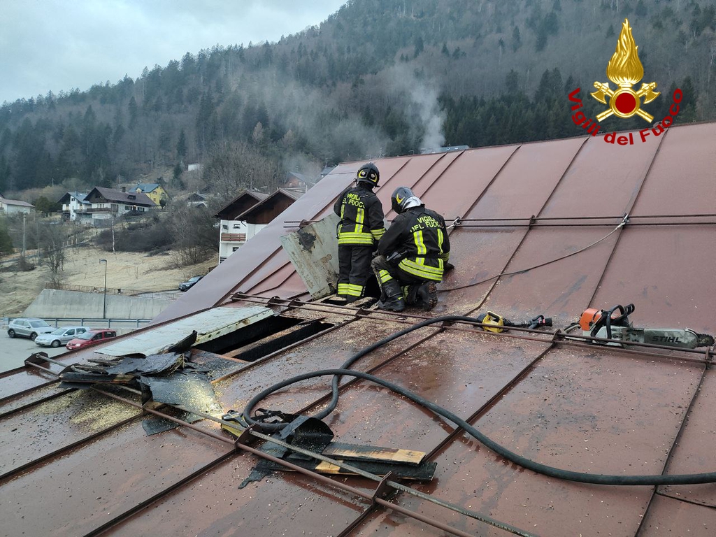 Ancora da accertare le cause dell'incendio che ha coinvolto parte della copertura in legno ricoperto di lamiera. Al momento sono in corso le operazioni di messa in sicurezza.