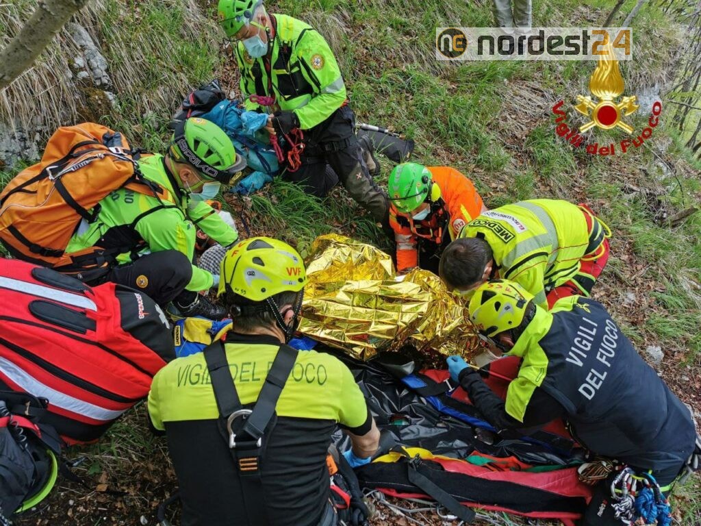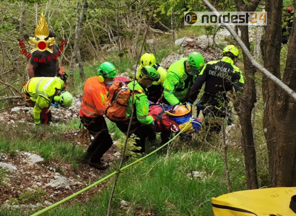 Un uomo del 1957 A. (nome) C. (cognome) di Padova è stato soccorso e recuperato dall'elisoccorso regionale e dai tecnici della stazione di Maniago del Soccorso Alpino intervenuti da terra a supporto dell'equipe di bordo, calata sul posto con il verricello in un tratto ricco di vegetazione.