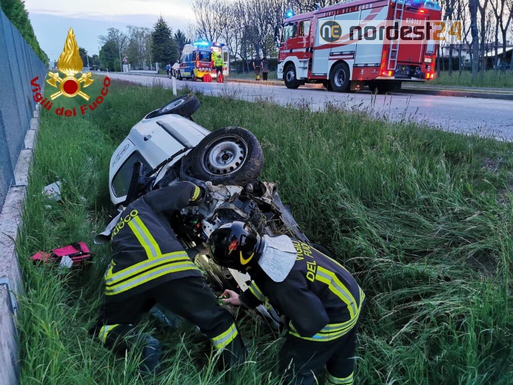 Incidente a Brugnera: scontro tra due auto, una finisce nel fossato