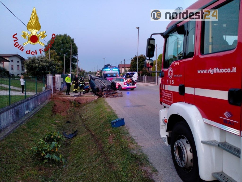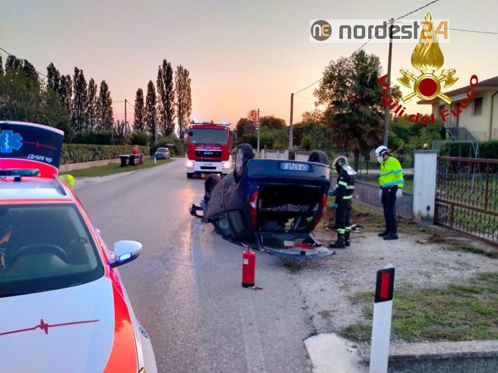Incidente ad Azzano Decimo, auto finisce ruote all'aria