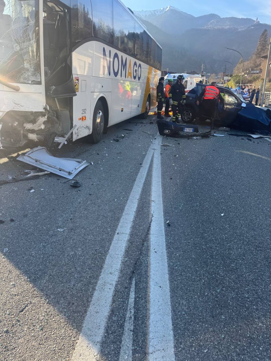 ARTA TERME (UD) – Paura nel pomeriggio di oggi, 26 febbraio 2026, lungo la SS52bis, dove si è verificato un violento scontro tra un’auto e un pullman. L’allarme è scattato alle 15.46 su richiesta del 118, che ha attivato l’intervento dei Vigili del Fuoco di Udine.