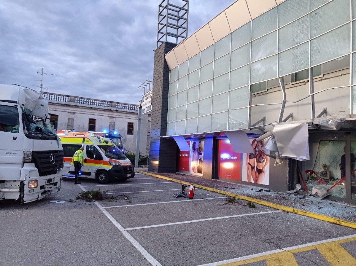 Nonostante la violenza dello schianto, il conducente del camion avrebbe riportato solo ferite lievi, mentre fortunatamente nessun cliente o dipendente del negozio è rimasto coinvolto. I danni materiali alla vetrina e all’ingresso del punto vendita sono invece consistenti, con vetri infranti e parte della struttura danneggiata.