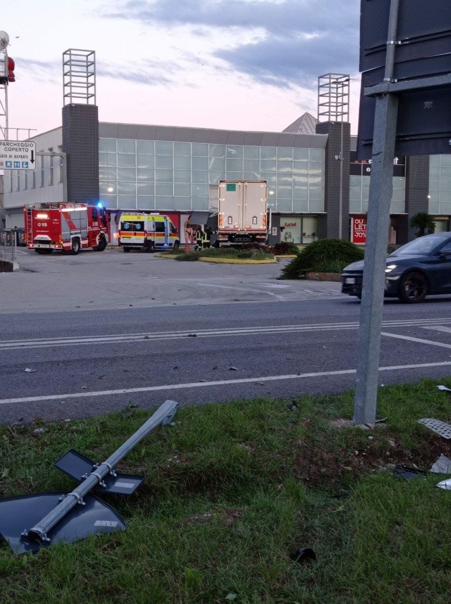 Camion frigo fuori strada a Tavagnacco finisce contro la vetrina di Arteni: paura ma nessun ferito grave.
