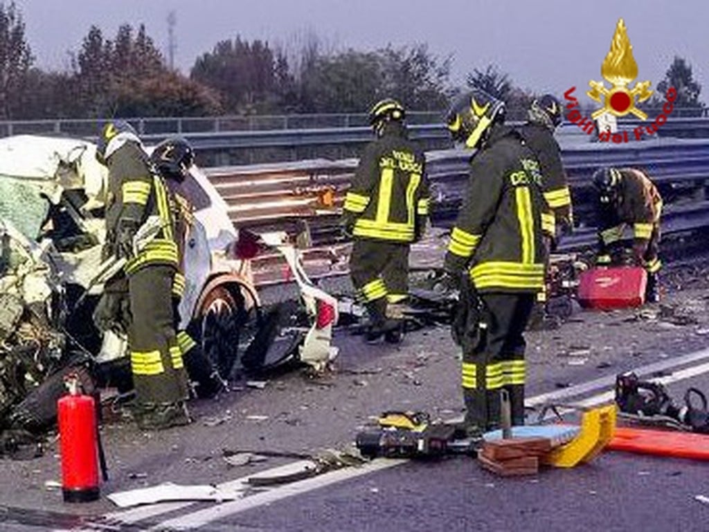 Scontro tra camion e auto sul Raccordo Autostradale 16 a Fiume Veneto, due feriti estratti dalle lamiere dai Vigili del fuoco.