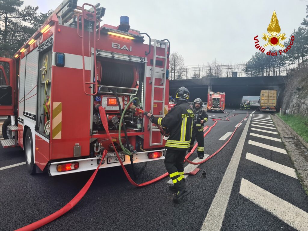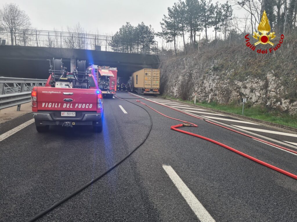 Alle ore 16.25 circa di oggi, 11 marzo, i Vigili del fuoco del comando di Trieste sono intervenuti con la squadra del distaccamento di Opicina una squadra della sede centrale supportate da un'autobotte il funzionario di guardia e il mezzo bimodale dotato di bumper (cannone che spara acqua ad alta portata) presso il km 18 + 600 del raccordo autostradale 13 tra le uscite di Trebiciciano e Fernetti in direzione Venezia per l'incendio di un mezzo pesante a seguito di un incidente stradale.