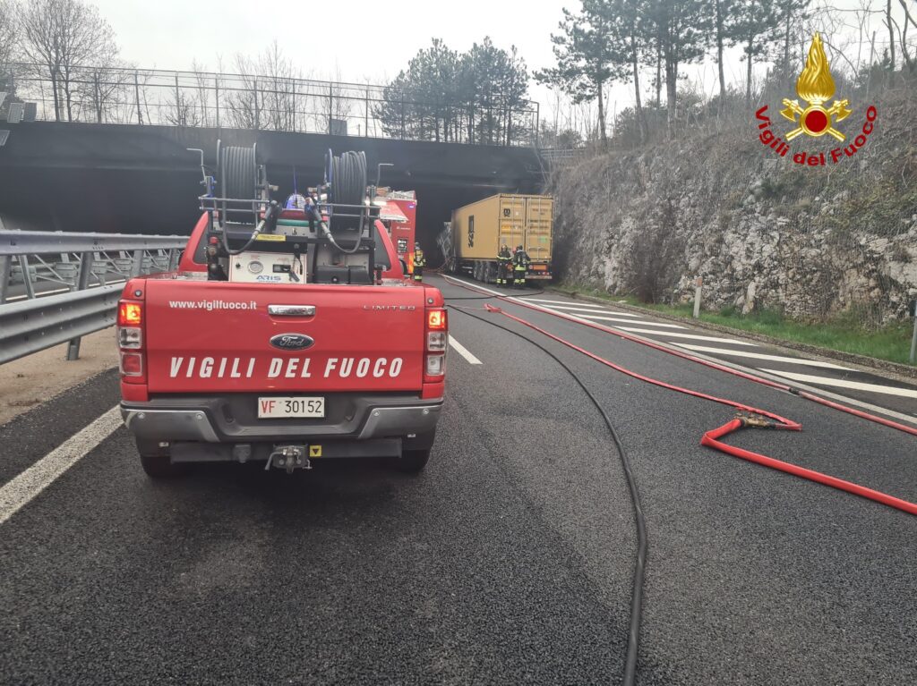 All'arrivo sul posto dei Vigili del fuoco l'autista del mezzo pesante era uscito autonomamente dalla cabina di guida ed era già assistito dal personale sanitario. I VV.F. hanno provveduto a spegnere le fiamme che stavano coinvolgendo anche la vegetazione soprastante la strada.