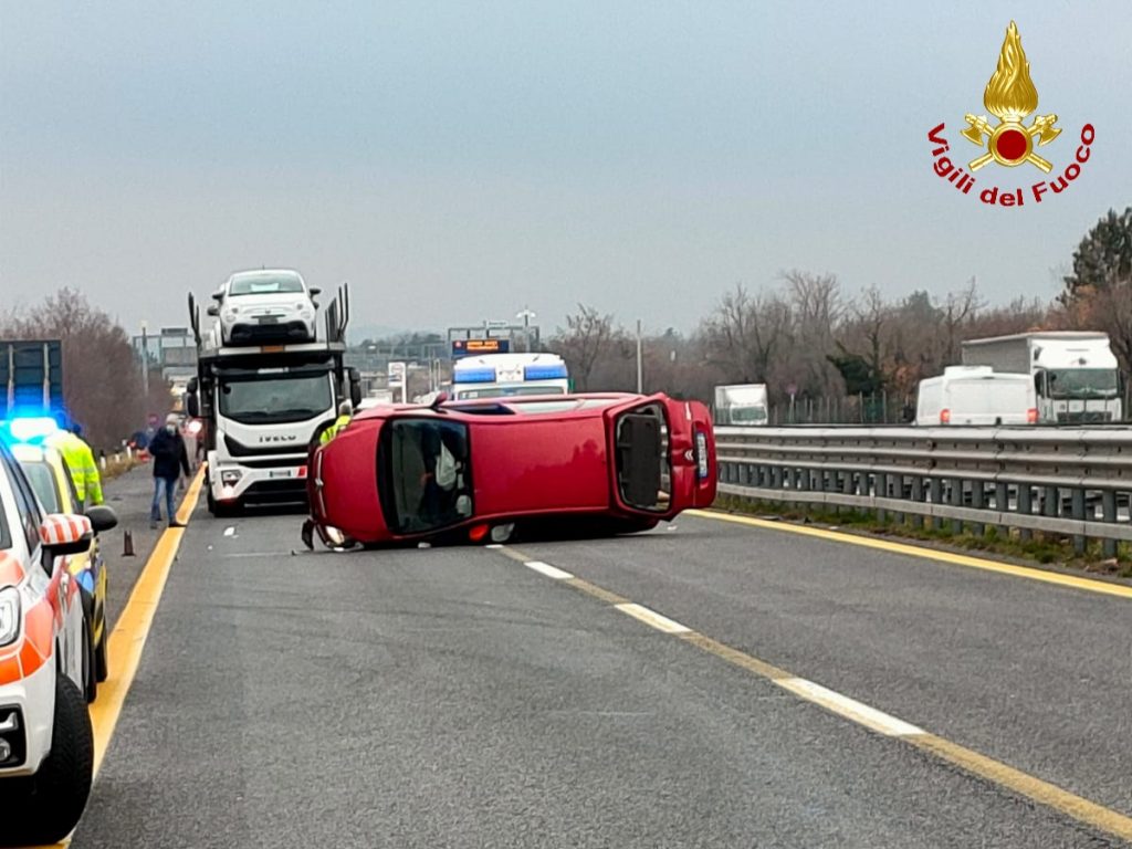 Incidente sul raccordo autostradale R13: auto si cappotta, un ferito