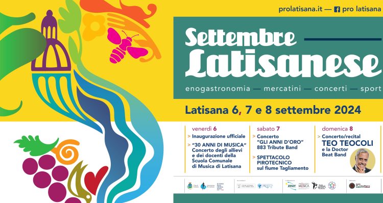 . L’organizzazione è a cura dell’Associazione Pro Latisana, in collaborazione con l’Amministrazione Comunale.Una curiosità: il logo di Settembre Latisanese è un piccolo capolavoro di design. Racchiude simboli significativi della città di Latisana e della festa stessa, come il fiume Tagliamento, la cupola del campanile del Duomo e i simboli dell’uva e del vino, richiamando così la vendemmia e la tradizione vinicola della zona D.O.C. Friuli Latisana.
