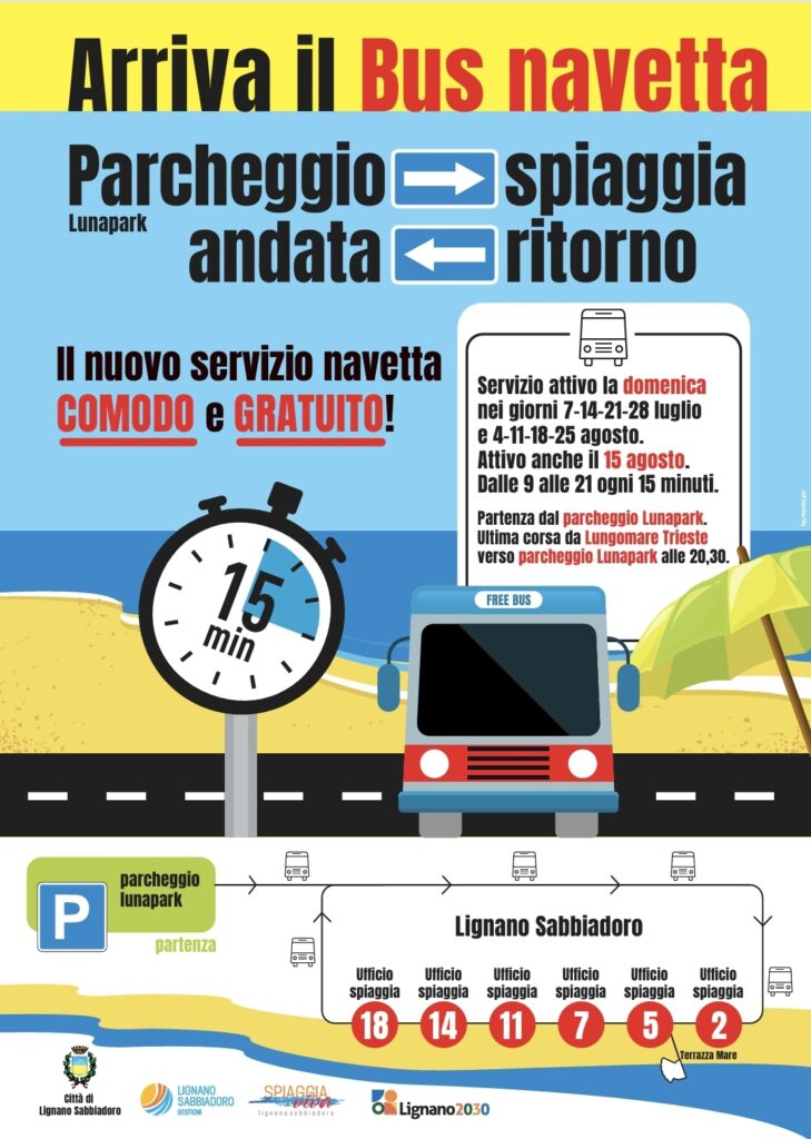 «Oltre al Comune – spiega l’Assessore alla viabilità e trasporti, Marina Bidin - partner del servizio sono Li.sa.gest. il Consorzio SpiaggiaViva e il Tavolo Lignano 2030. Tutti assieme abbiamo inteso avviare questo collegamento, comodo e gratuito, per incentivare, in particolare il turista pendolare, un nuovo modo, più sostenibile, di raggiungere la spiaggia».