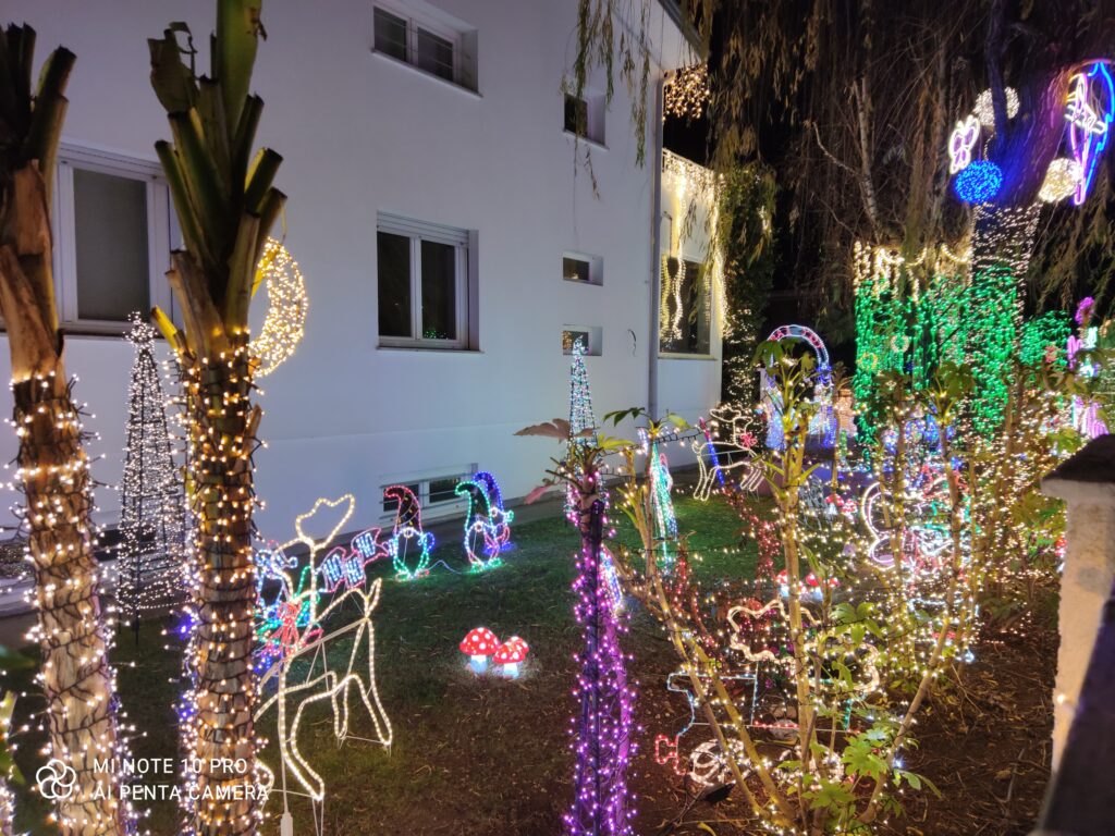 TAVAGNACCO. Nel cuore di Feletto Umberto, frazione di Tavagnacco, da questa sera il giardino di un'abitazione si trasforma in un'esplosione di luci natalizie, attirando l'attenzione di decine di visitatori. Un grande allestimento che mescola tradizione e innovazione, creando un vero e proprio villaggio colorato. Le luci, che si intrecciano tra rami, siepi e finestre, disegnano un'atmosfera incantata, invogliando grandi e piccini a vivere il Natale con meraviglia.