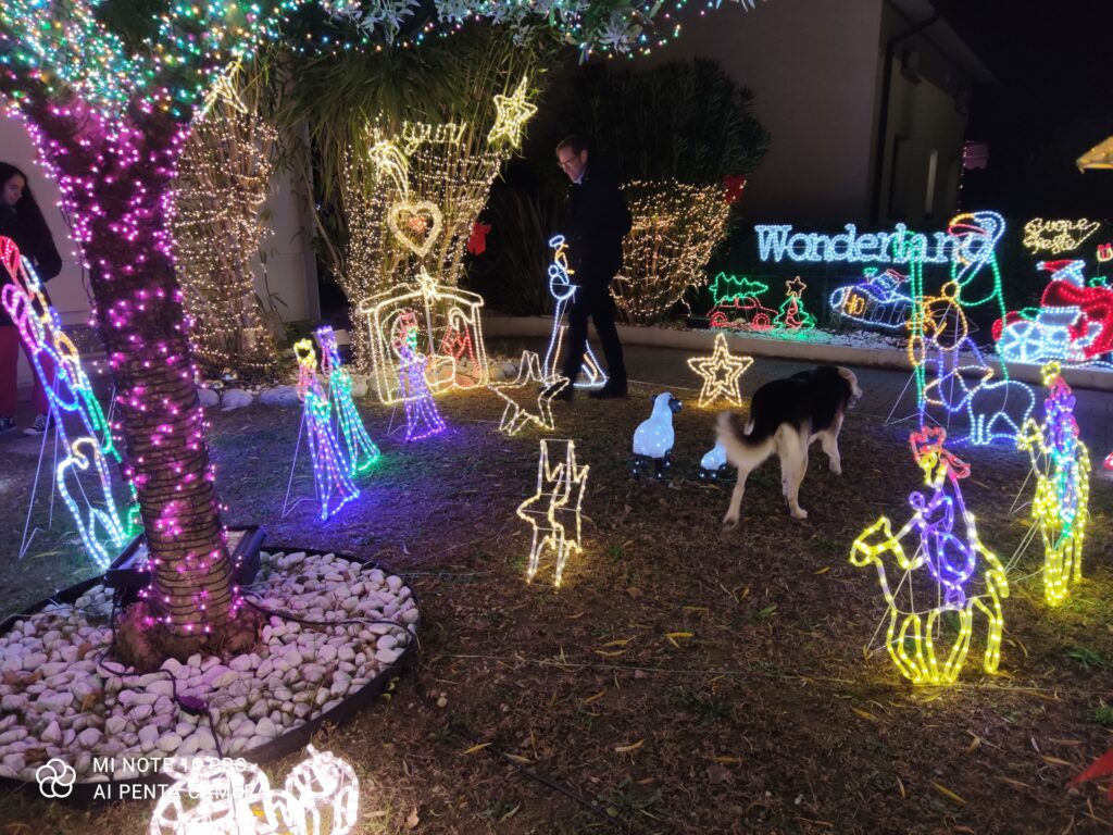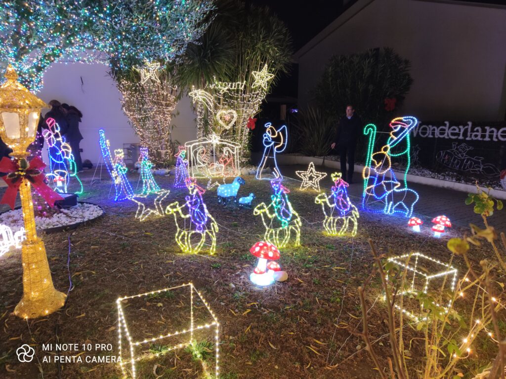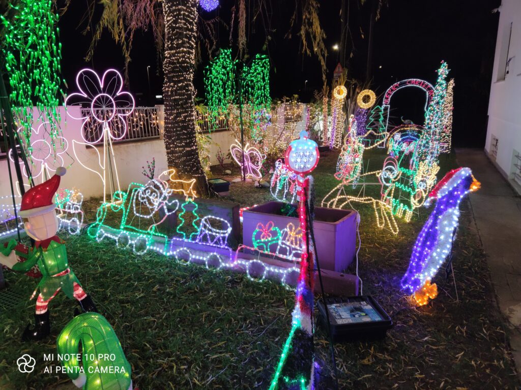 Questa maxi installazione natalizia, che si estende lungo l'intero giardino, alberi e recinzione compresa, è un'opera ideata dalla famiglia Perna. Mary e Paolo hanno deciso di condividere con la comunità il frutto del proprio impegno, accendendo le luci oggi 8 dicembre, per proseguire fino al 7 gennaio.