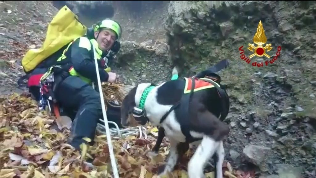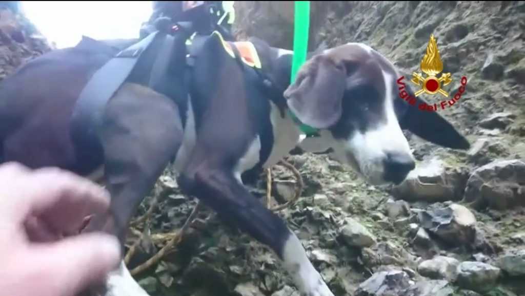 Lungo e impegnativo intervento per salvare un cane da caccia