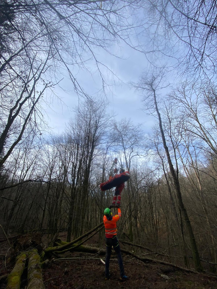 Hanno provveduto a liberare l’area da ramaglie sporgenti permettendo così al verricello dell’elicottero di operare nel modo più stabile possibile.