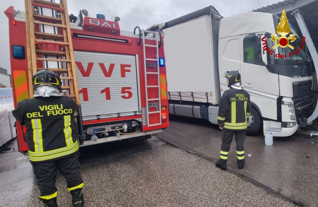 Appena giunti sul posto i Vigili del fuoco creavano un varco nella cabina del camion per permettere al personale medico di raggiungere l’autista per il quale purtroppo il medico poteva solamente constatare il decesso.