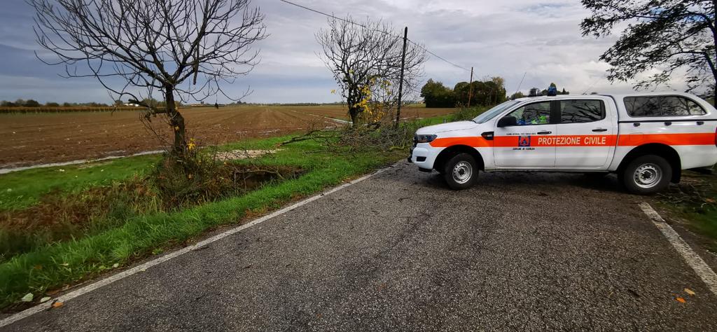 Aquileia - I volontari della squadra comunale di Protezione Civile del Comune di Aquileia sono intervenuti oggi lungo la strada regionale 352 per caduta alberi a causa del maltempo.