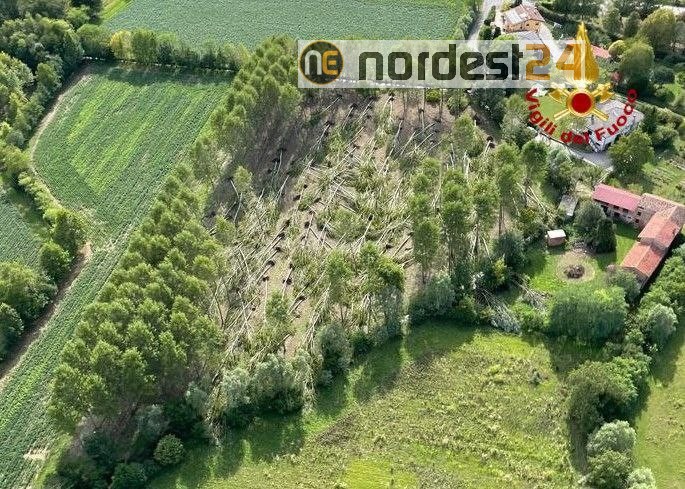 Le immagini mostrano anche alcune zone boscate del territorio fortemente danneggiate dal vento, con numerosi alberi abbattuti.