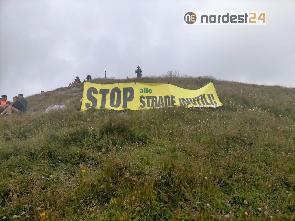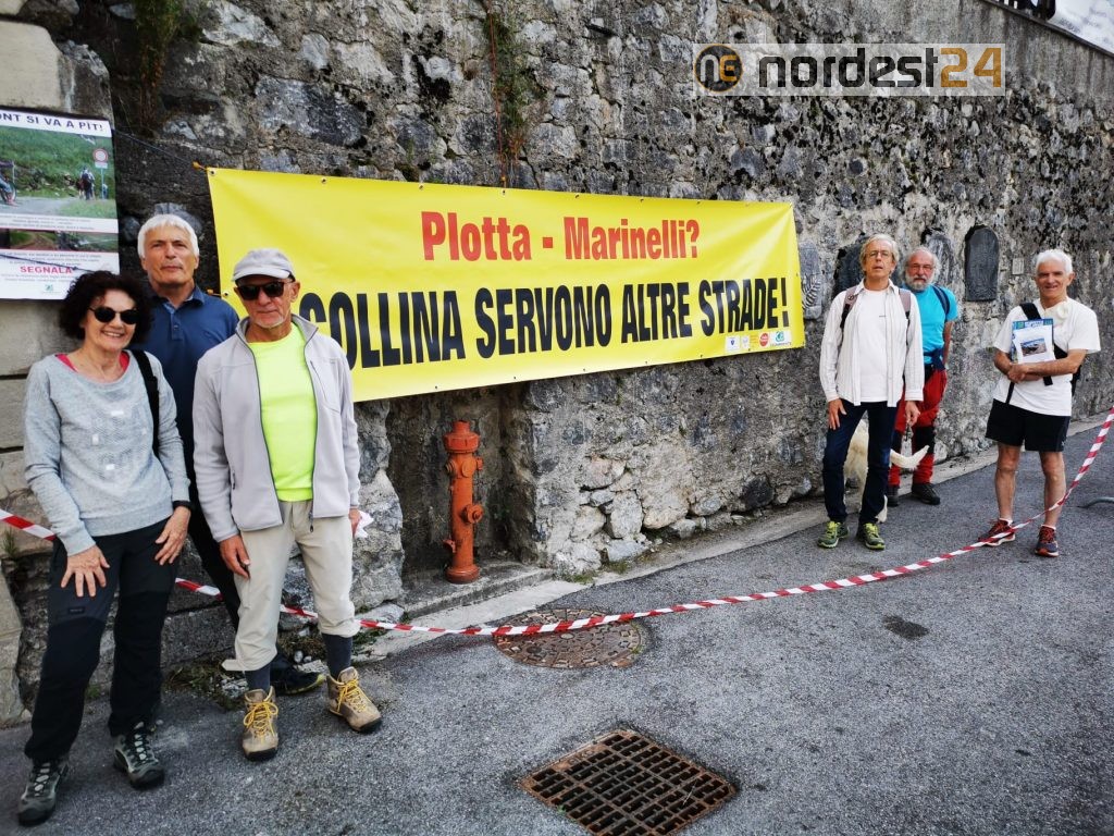 Ma c’è dell’altro che segna la nostra presenza: il civile dissenso contro un’opera inutile, la strada che da Casera Plotta sale, sul ripido e instabile versante, al Rifugio Marinelli, a cavallo tra la seconda e la terza staffetta, un rifugio già servito dalla strada che sale da Collina. Uno sfregio all’ambiente e al paesaggio di alta montagna e risorse buttate al vento.