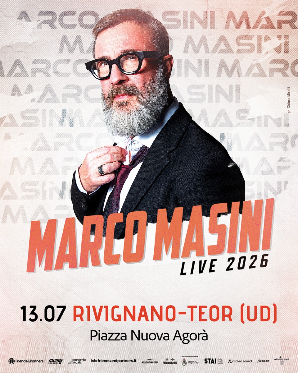 RIVIGNANO (UD) - A grande richiesta, dopo il successo al Festival di Sanremo 2026 con il brano presentato insieme a Fedez “Male Necessario” e l’uscita il 6 marzo del suo ultimo progetto discografico “Perfetto Imperfetto”, Marco Masini torna ad emozionare il suo pubblico dal vivo con “MARCO MASINI – LIVE 2026”. Alle 5 date evento di novembre nei grandi spazi dei palasport si aggiungono quindi nuovi concerti outdoor al via da luglio. L’unica data esclusiva in Friuli Venezia Giulia sarà il prossimo 13 luglio (inizio alle 21.00) nella Piazza Nuova Agorà del Friuli di Rivignano (Ud).