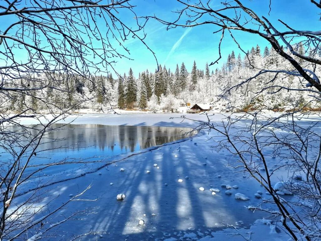 Ogni scatto di questa collezione esclusiva cattura un momento unico, mostrando la varietà delle sfumature e dei paesaggi che si possono ammirare ai Laghi di Fusine. Dalle rive innevate ai boschi silenziosi, ogni immagine è un invito a esplorare e a meravigliarsi.