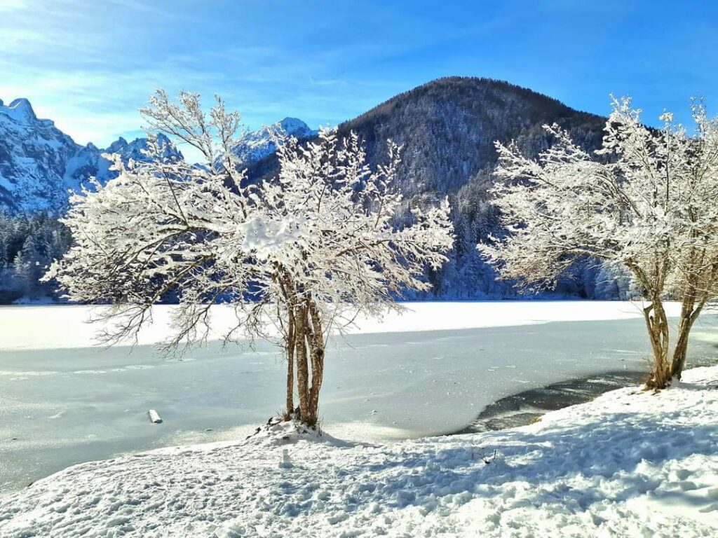 In questa splendida giornata del 21 gennaio 2024, i Laghi di Fusine, gioielli naturali incastonati nel cuore delle Alpi Giulie, si sono trasformati in un vero e proprio paradiso invernale. La combinazione di neve immacolata, sole radioso e un cielo azzurro cristallino ha creato uno scenario da sogno, immortalato in 60 foto straordinarie.