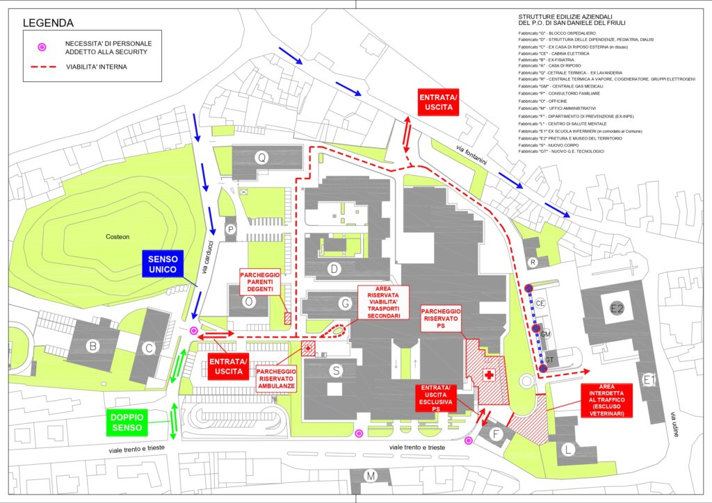 I percorsi autorizzati verso le pertinenze esterne del presidio sono chiaramente indicati nella planimetria allegata. Il personale del Presidio Ospedaliero sarà a disposizione per fornire indicazioni e assistere gli utenti nella nuova gestione degli accessi.