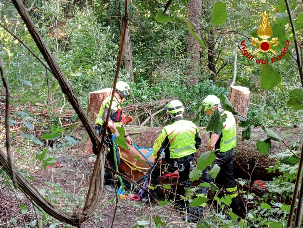 Il 30 settembre 2023 la squadra dei Vigili del fuoco del Distaccamento di Tolmezzo (UD) è stata attivata per un salvataggio bovino nella frazione di Mione a Ovaro (UD). Giunti sul posto i Vigili del fuoco, su indicazioni dell’allevatore, hanno trovato una mucca che, in rientro dall’alpeggio, era scivolata nel bosco per circa 50 metri su una parete rocciosa terminando la sua caduta contro un grosso tronco.