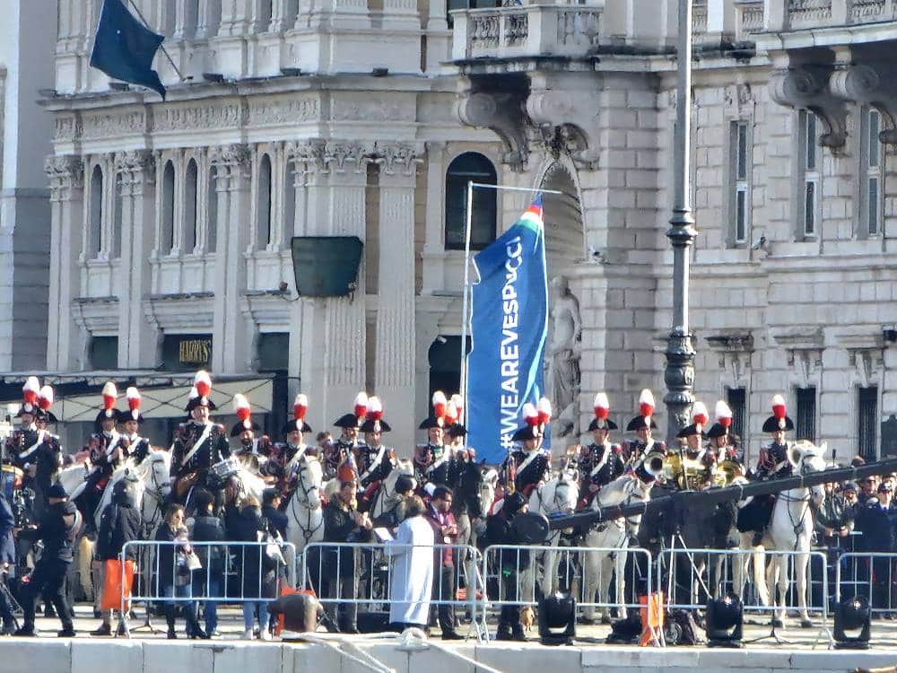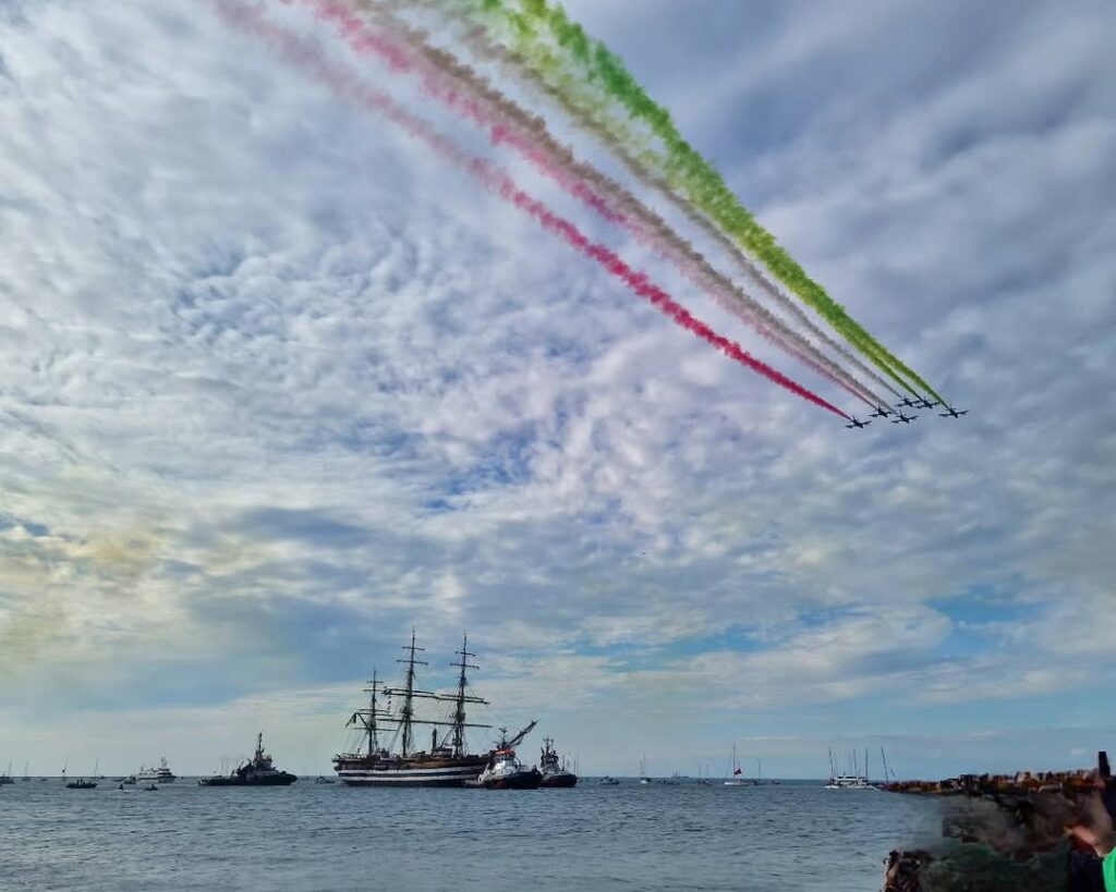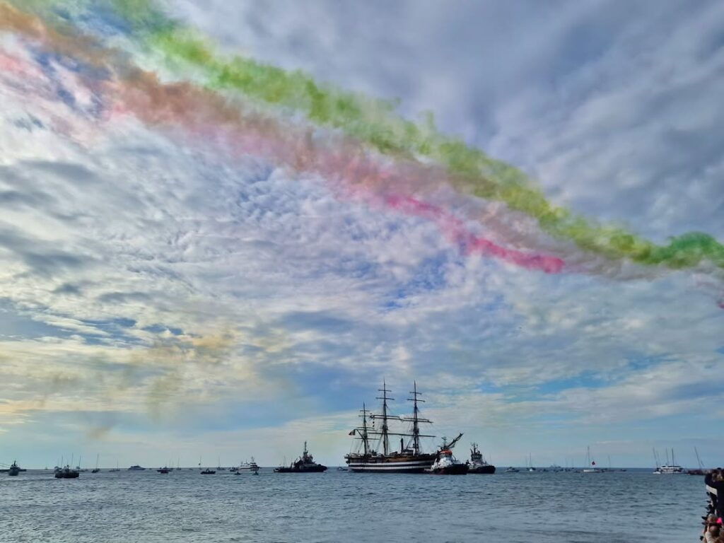 L'arrivo della Nave Amerigo Vespucci al porto di Trieste è stato un evento che ha attirato tantissimi cittadini e turisti, accorsi da ogni parte per assistere a un momento che entrerà nella storia. A dare il benvenuto alla nave, le Frecce Tricolori, che hanno salutato il veliero con il loro volo acrobatico, creando un'esplosione di colori nel cielo. La cerimonia è stata accompagnata anche dalle salve di cannone e dalla musica della Fanfara dei Bersaglieri, che hanno reso ancora più solenne l'atmosfera.