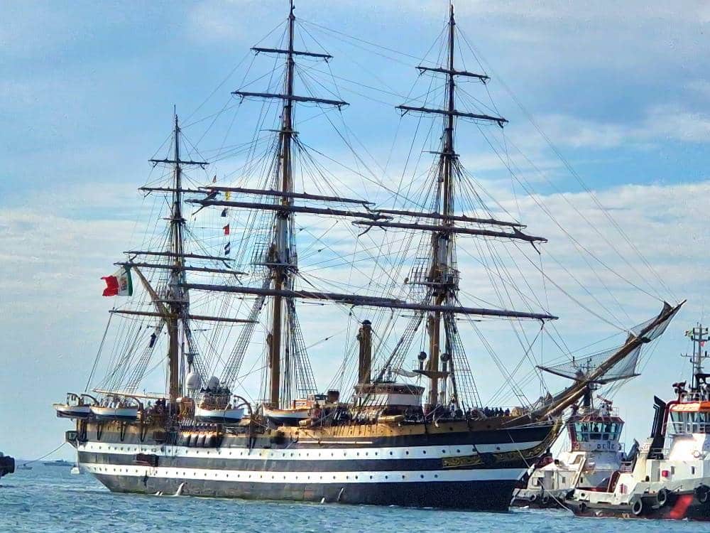 Il veliero è stato ormeggiato al molo dei Bersaglieri, situato vicino a Piazza Unità d'Italia, dove è stata posizionata anche la Nave Trieste, una delle unità più moderne della Marina Militare, simbolo dell'evoluzione tecnologica delle forze armate italiane.