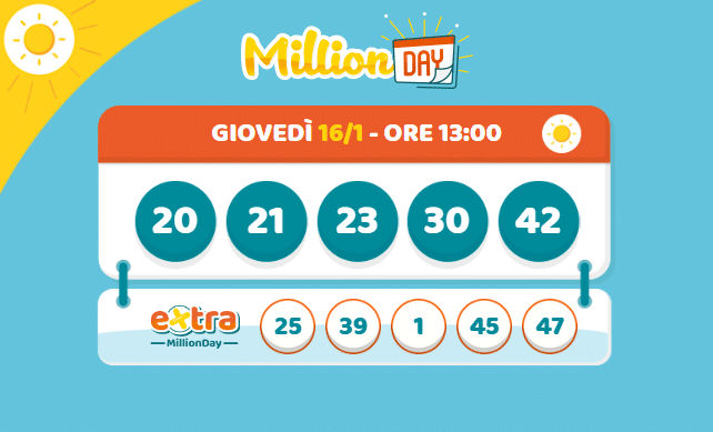Oggi, 16 gennaio 2025, i numeri vincenti dell'estrazione del Million Day sono i seguenti: