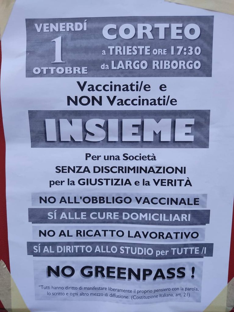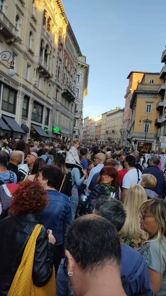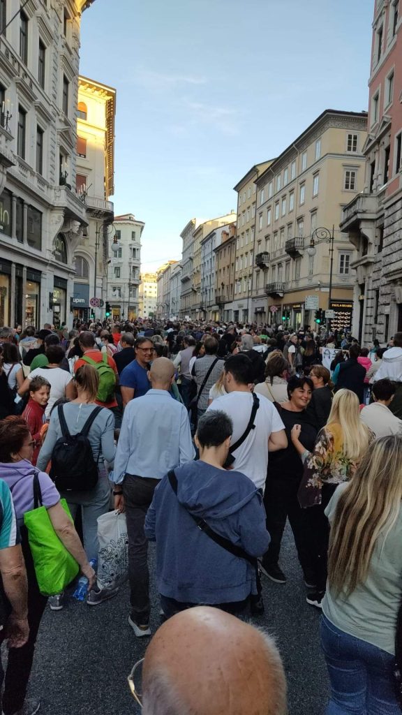 TRIESTE. Nuova partecipata manifestazione a Trieste contro l'obbligo di "Green pass" oggi pomeriggio venerdì 1 ottobre 2021.