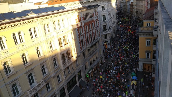 Nuova protesta a Trieste contro il "Green pass": in migliaia alla manifestazione