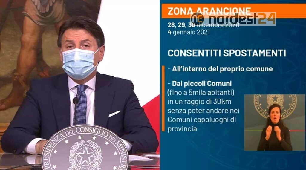 Il testo del decreto recita: «nei giorni 28, 29, 30 dicembre 2020 e 4 gennaio 2021 si applicano le misure di cui all’articolo 2 del decreto del Presidente del Consiglio dei ministri 3 dicembre 2020 (quelle delle «zone arancioni», ndr), ma sono altresì consentiti gli spostamenti dai comuni con popolazione non superiore a 5.000 abitanti e per una distanza non superiore a 30 chilometri dai relativi confini, con esclusione in ogni caso degli spostamenti verso i capoluoghi di provincia».