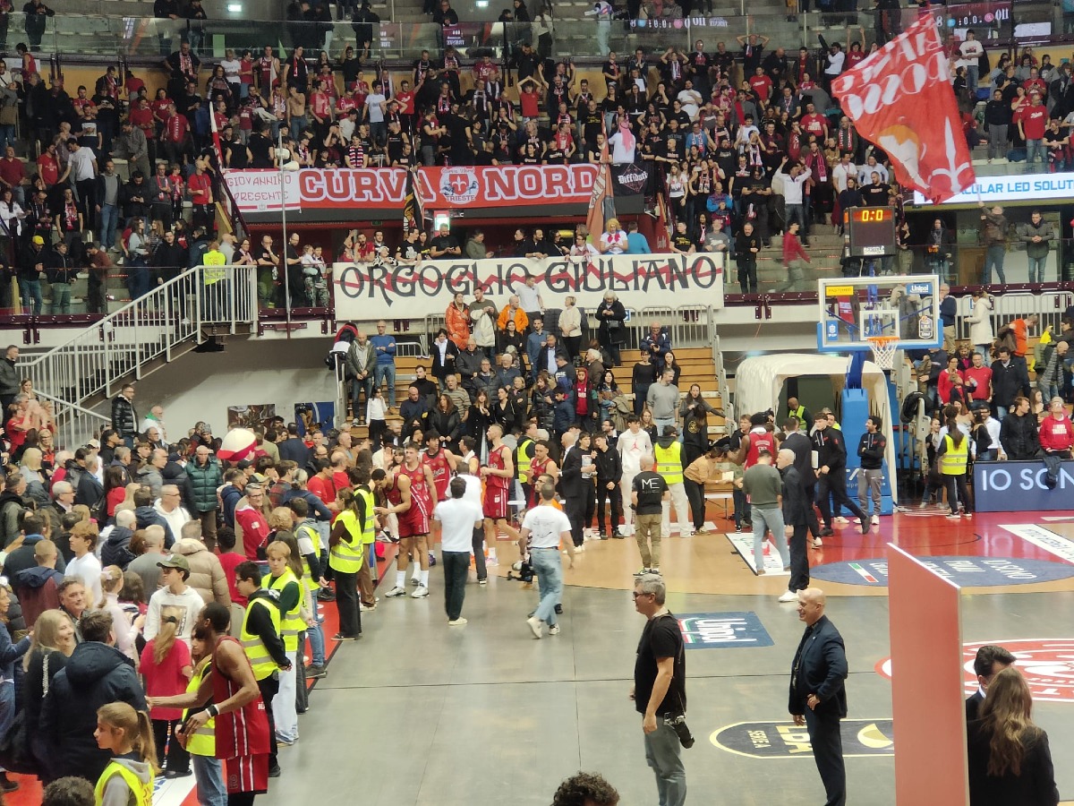 Gli ultimi minuti si trascinano senza particolari sussulti, ad eccezione di una schiacciata in windmill di JTA lanciato in contropiede. Quinto fallo di Sissoko e spazio anche per il giovane Cinquepalmi, che trova anche i primi punti nella massima serie grazie al bell’assist di Ross.